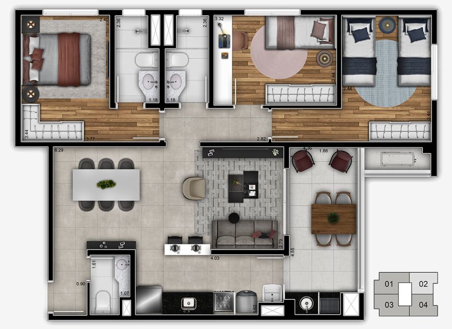 * Suítes: 2 suítes espaçosas, projetadas para o seu descanso e privacidade.